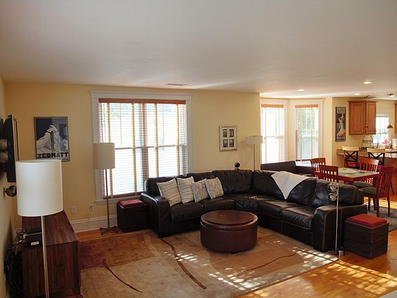 Beautifully maintained 3 bedroom, 2 bath condo, occupying the 2nd and 3rd floors, in East Arlington. Walk score = 88! Located just off of Mass. Ave and steps to the movie theater, shops, restaurants, library, bus, bike path. This sunny 1800 sq foot unit features a large kitchen (with deck) that flows into dining and living areas. One bedroom, full bath and alcove with French doors also on this level. The top level features an additional bedroom, full bath and spacious master with custom walk-thru closet and private deck. Dedicated driveway parking for 2 cars and shared yard. Unit has hardwoods throughout, lots of closet space, stainless steel and granite in the kitchen, gas heat, central AC, wood blinds/roman shades on the windows, private basement storage area with washer and dryer. Driveway is plowed in the winter. Very responsive Arlington-based landlord. For rent by owner - NO FEE. First and security only. Available December 1. Rent $3550/month. Showings by appointment.