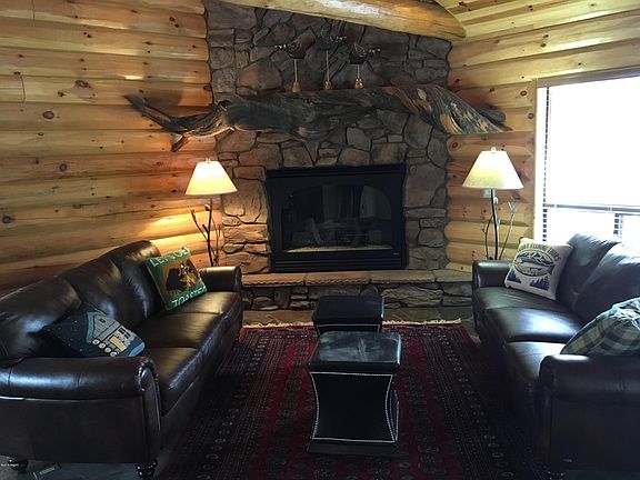 This beautiful log home is spacious, welcoming, and the perfect fit for the entire family. Smart home; features Smart switcher throughout that run on schedules as well as respond to voice commands. This home is also equipped with a monitored security system as well as multiple camera around the exterior of the building. The Home boasts four (4) natural gas fireplaces and one (1) wood burning fireplace located on the large elevated covered patio. On the Main Level are large family gathering areas, 1 Bedroom with a King Bed; and two (2) Bathrooms. A Large Master Chef Kitchen; below the commercial Hood is a 40" Gas Range and Oven, Large Island and Breakfast Bar; 2 separate sinks (both with food disposals), Microwave, Dishwasher, Split Fridge & Freezer and Keurig Coffee Maker. On the top level you will find a large Master Bedroom (with a Private Patio) and Large Master Bathroom complete with a Steamist Shower, a Jacuzzi Tub, His and Her sinks & Vanities as well as a Master Closet; this Master Bedroom shares a 3 sided Gas Fireplace with the Loft on the other side. The Loft is a nice open area with a sectional couch (great for chatting, watching TV or playing games). Also on the top level is a guest bathroom and 2 additional Guest bedrooms each with a Master Bed and one with an additional Full over Full Bunkbed. On the bottom floor you will enjoy an open Family Room (with a 70” TV & Plenty of seating), at the bottom of the stairs is a Gas Fireplace and around the corner from the Family Room is a Bunkhouse with 3 Full over Full Bunkbeds and as additional bathroom. The Heated 3 Bay car garage has been converted into a Recreational Area complete with Arcade Games such as Dual Shot Basketball, Air hockey Table, Pink Pong Table, Foosball Table, Wall Mounted Extra Large Connect 4, and a Couch for lounging. Other Notables: TV and Steaming service in each room (5 x 50” TVs and One 70” TV) There is a Covered Patio off the Kitchen with a Gas Grill There is a large Covered Patio off the Main Level, includes dual ceiling fans, and a Wood burning Fireplace, there are several tables and seating for eating, chatting or games; the evaluated Patio provides beautiful views of the Forrest. Off the lower level or down the stairs from the Main Patio is another Covered Patio Again, yet another Private Patio off the Master Bedroom