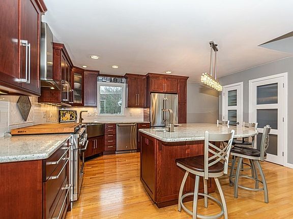- Kit Dscrp: Flooring - Hardwood, Countertops - Stone/Granite/Solid, Cabinets - Upgraded, Kitchen Island, Stainless Steel Appliances, Remodeled