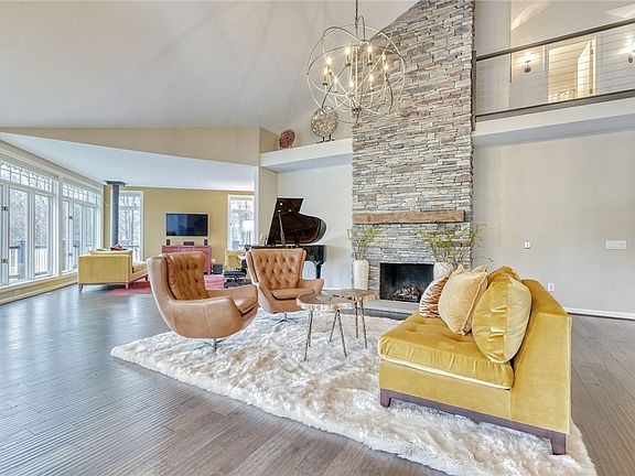Modern Luxury at it's finest in the heart of Cobblestone Creek! Surrounded by the tee box of hole 8, and the green of hole 3 you will find a one of a kind sophisticated and sprawling stunning estate. Enter into your grand foyer showcasing a custom staircase, expansive views of the updated stone floor to ceiling fireplace, and open to your formal dining room and large private office. The showstopper is the HUGE open living area with panoramic views of the golf course from every room! This home features a updated modern Chef's kitchen, perfect for entertaining with an oversized island, additional dining area, and a butler's pantry(second oven)/laundry room. Warm up by the fire and grand piano in your great room! The morning room offers views of the course and privacy of the custom patio/deck. The second floor offers 3 bedrooms and 2 full bathrooms all overlooking the main floor. The lower level is living at it's best! The "Jazz" bar features a custom bar area open to the living area, and you will LOVE the fitness center! Custom Glass doors showcase the infrared sauna and huge Gym! Finally unwind in your Luxurious Master Suite with lounge and BRAND NEW spa bathroom. This is a 10!