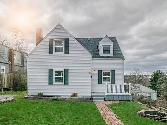 BEAUTIFULLY RENOVATED cape cod in Chartiers Valley school district with 4 big bedrooms, 2 full baths and a huge backyard! Original hardwood floors refinished beautifully throughout. Completely remodeled eat-in kitchen with new all-wood cabinets featuring dovetail/soft-close drawers & doors, granite countertops, new S/S appliances, farmhouse sink, new tile flooring and custom tile backsplash. Both bathrooms updated with newly refinished cast iron tubs and custom tile shower surrounds, new vanities, new fixtures and new tile flooring. New roof, new windows and new 100 amp panel box, with central AC being added! Off-street parking for up to 2 cars and room to add a carport or garage in the future. Located on a lovely quiet street just minutes from downtown Carnegie, 376 and I79. Home warranty included! Move right in!