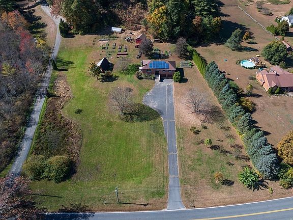 This is a beautifully renovated 3 bedroom, 2 full bath home on over 5 acres of mostly cleared land in Southampton, close to the Easthampton line. Spacious and airy main living level combines a very sunny living room with gas fireplace, dining area that opens to a large deck and a newly upgraded kitchen with quartz countertops, Italian marble backsplash and stainless steel appliances. At the other end of the main level are 3 bedrooms and a full, newly renovated bathroom. Central vac system throughout the house. Downstairs features a spacious den/family room with wood stove, pool table and a full bathroom. Natural gas heat. Other updates include: New heating/AC system 2020, new windows 2021, blown in insulation in attic, newly built greenhouses, barn & chicken coop. Roof is 10 years old. Pool table to remain as well as safe. Solar panels replaced summer 2024 and leased through Tesla. Shows can begin right away with OPEN HOUSES Friday 4-5:30 and Sat. 12-1:30.