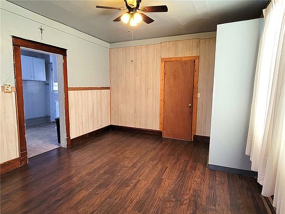 Great starter home on a double lot! Spacious Living room opening up to the formal Dining Room. With updated first floor full bathroom. Kitchen with dine-in area leads out to the back porch overlooking the fenced in yard! Large Master Bedroom on the second floor, with original hardwood flooring underneath the carpet. Two more bedrooms and another full bath make up the second floor. Finished 3rd floor too! Great office/extra bed space! Covered parking and plenty of on street parking too.