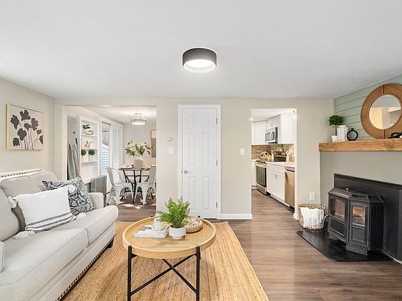 Start the year off fresh in this renovated turn-key ranch and enjoy single level living at its finest. This property (perfect as a starter home, or for those looking to downsize) has an extremely desirable open concept. Located on the corner of a quiet dead-end road and just a short distance to Falls Pond. This 2 bedroom home has been completely updated. Vinyl flooring installed throughout. The kitchen has upgraded quartz counter tops, stainless steel appliances, tile backsplash, new cabinets with and additional tall pantry cabinet. Brand new electric service installed, recessed lighting, and modern light fixtures added as well. Fireplace was refaced with a custom mantle & shiplap accent wall. Brand new matte black bathroom fixtures with upgraded tile flooring and classic subway shower tile. The backyard is perfect for entertaining, & the addition of a brand new fence offers ample privacy. The workshop/garage area is great for storage & could be converted back as a single car garage.