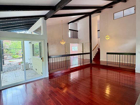Mature treesExpansive backyardSurrounded by rolling hillsLight-filled homeLarge picture windowsRich redwood floorsSoaring ceilings