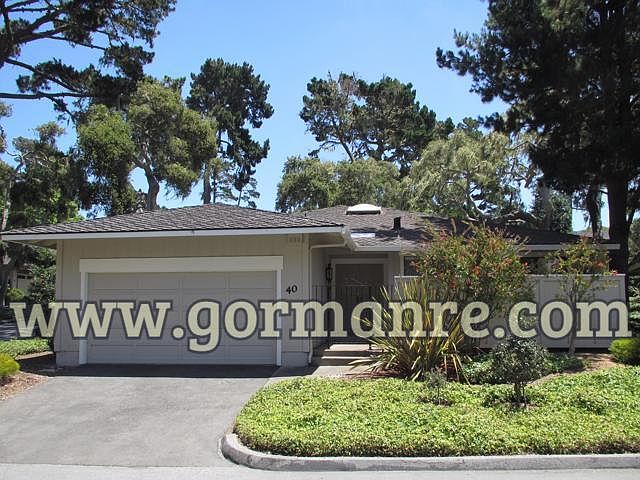 Attractive and affordable 2 bedroom, 2 bathroom home in a planned community near schools, shopping and the Del Monte Forest! This home is located in the Country Club Gate complex near the Country Club Gate Shopping Center and all of the wonderful Forest Hill area businesses. It is also just outside of the Pebble Beach gate and the many walking trails through the Del Monte Forest. This home is one-level, with approximately 1,560 square feet of living area. The large room that includes the living room and the dining area is quite spacious (27.5' x 16.5'). That room features a wood-burning fireplace, laminate wood plank floors, open beam ceilings, a skylight, and access to the outdoors through a sliding glass door. The kitchen is gorgeous and features granite tile counters, a laminate wood-plank floor, a breakfast bar, and a breakfast nook for informal dining. Appliances include a refrigerator, self-cleaning double oven with a convection oven at the top, and electric glass cooktop, a dishwasher, and a disposal. The master bedroom is spacious and has wood-plank laminate floors and two sets of closets, one in the bedroom and one in the bathroom dressing area. There are lots of other closets in the hallway of this home. The master bathroom has tile floors and a large tile shower stall. The guest bedroom is spacious, has wood-plank laminate flooring, and a walk-in closet. The guest bathroom features tile flooring and a tile shower over tub arrangement. The home has central heating. There is a two-car attached garage with an automatic door opener, which is directly accessed from the home. There is also a nice patio area by the front entrance. The laundry closet is in the hall and includes a washer and an electric dryer left by the prior occupant as a courtesy (no warranty) Rent includes homeowner's dues, basic gardening and sewer. No smoke/pets. Available immediately. Must adhere to all rules and regulations of the Country Club Homeowners' Association; you will be provided with a copy of their rules.