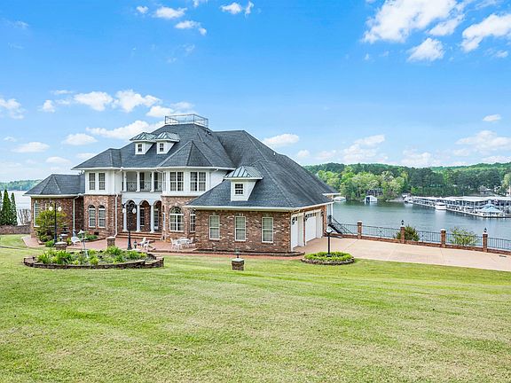 This 7br 5ba brick estate is a true gem. With panoramic views of Yellow Creek, a three car garage, & 240 ft of water frontage, its a water front paradise. The house offers 2 separate living areas, each with their own full kitchen & laundry. You'll love multiple covered decks, patios, and a gazebo at the waters edge leading to the stationary boat dock with party deck. This home was professionally decorated and is sold furnished!