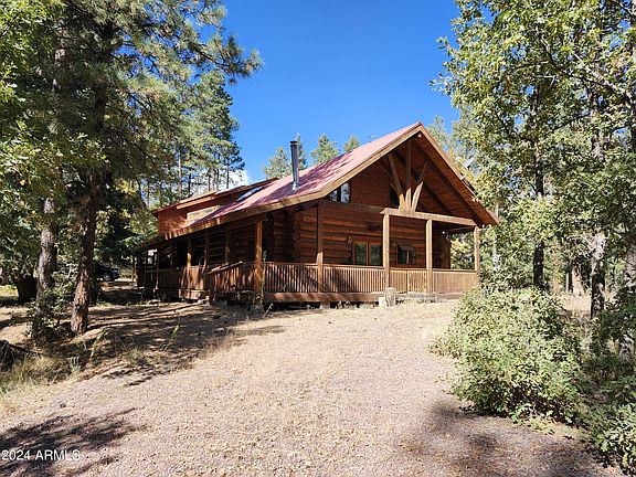 Huge Log Cabin in Alpine Village East. Let your imagination run wild how to use the oversized former art studio with lots of windows & lighting. Additional bonus room next to the art studio can be a quiet library room or private office. Huge loft gallery w/room for a pool table/media area. Real wood flooring throughout most of the home, hickory wood kitchen cabinetry. Covered surround deck. Oversized 2-car garage and additional covered parking in covered breezeway. Sold together with an additional lot adjacent to the property NO HOA.You must see this cabin.