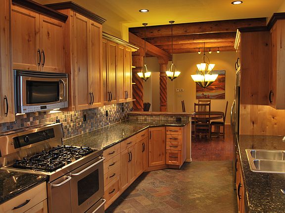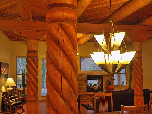 Charming, beautiful southwestern style home located in a peaceful, quiet area. The backyard landscape is natural and includes a pond, live stream, and waterfall. The interior is designed to perfection with hand scraped hardwood and slate flooring, split cedar ceiling, vigas, rough sawn beams, and roped columns.