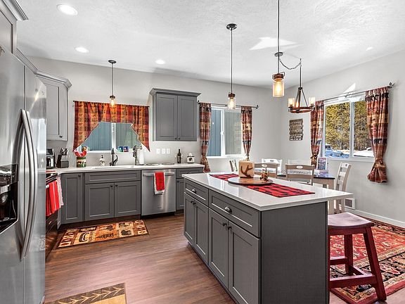 Beautiful single level home in Priest Lake! Fully furnished with Amish crafted furniture throughout. Practically new, built in 2021, 1344sqft with 3 bedrooms and 2 bathrooms on a level .73 acres. Open floor plan design, quality finishes, large windows and a new wood burning stove offer a warm and inviting atmosphere. Quartz countertops throughout. Kitchen has a large island with a breakfast bar and stainless steel appliances and plenty of cabinets. Spacious main bedroom en-suite and 2 large additional bedrooms. Laundry/mud room with built-in cabinets and easy access from the backyard. Detached 24x30 shop with electricity and room for parking and storage. Fenced backyard and mature trees create a private setting. Lot is zoned Rural Service Center that could offer commercial opportunities. Minutes away from Priest Lake Golf Course, The Hill's Resort, restaurants, boat launch and other amenities.