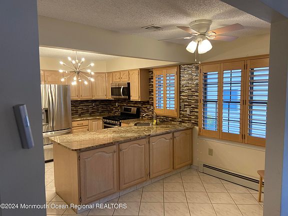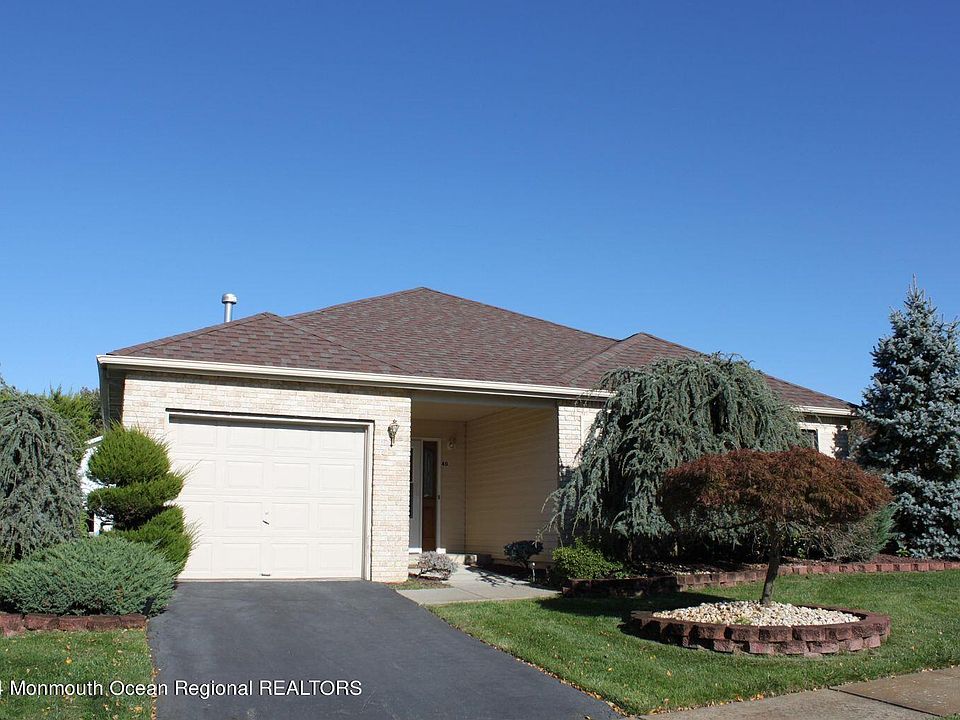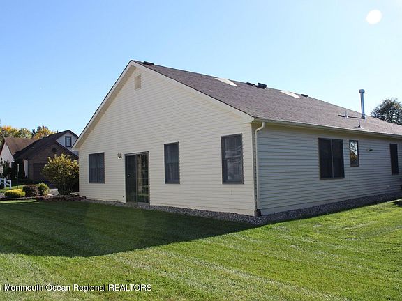 Step inside this spacious Cambridge model featuring cathedral ceilings and skylights in the living area, creating an airy and inviting atmosphere. Upgraded base-board heating. The kitchen renovated a few years ago, showcases granite counters, a complete upgraded appliance package, glass block backsplash and upgraded light fixture. Plus gas cooking. Enjoy the peace of mind with a newer heating and air-conditioning systems. Outdoor patio has been enclosed. Plantation Shutters in the kitchen and bathrooms. The property has extensive upgraded landscaping that needs a little TLC. Embrace an active lifestyle with community amenities like a pool, tennis courts, bocce, and a variety of clubs, including pickleball and gym facilities. Socialize at community parties and enjoy entertaining shows. Centrally located near Route 18 and Route 9, this residence provides convenient access to shopping, highways, restaurants, and is just a short drive to the Jersey Shore. Explore the beauty of Monmouth County Park System, making every day a retreat in your new home. Low HOA maintenance fee of $220 per month completes this idea 55+ living experience. Don't miss the chance to make this Greenbriar gem yours.!