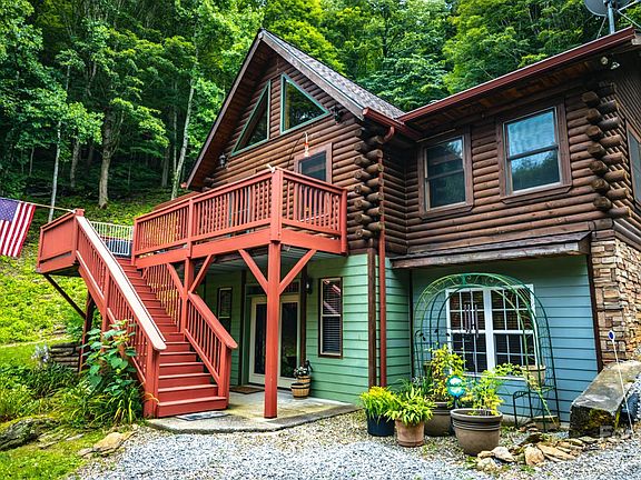Enjoy the breathtaking pastoral and mountain views as you make your way to this private oasis. Awaiting your arrival is an exquisite log home nestled on 5.15 acres of low maintenance mountain property complete with a rolling stream. The front and back decks allow plenty of space for entertaining or simply enjoying the sounds and endless sights of nature. This home features two master suites on the main level and two bonus rooms with an additional family room and half bath on the lower level. With crisp fall evenings just around the corner you are sure to enjoy the wood burning stove in the great room. This home boasts plenty of natural light, loads of storage space, a setting that offers limitless peace and relaxation. The outdoor workshop has 370 + square feet of workspace or additional storage space. Not to mention the adorable chicken coop painted to match! Don't miss out on this amazing home!