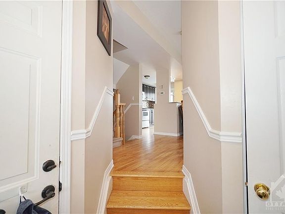 Meticulously Maintained End Unit Townhouse in Carleton Place. Situated on a Premium Extra Long Pie-Shape Lot, with No rear neighbor, long driveway with parking for two cars and with a beautiful front covered porch welcomes you into this immaculate property. This home features a Laminate flooring throughout the three levels. Main floor offers a sun-drenched living room with a gas fireplace and a bright Formal dining room. Chef-style kitchen with upgraded cabinet, pots and pan drawers, lots of storage space and stainless-steel appliances. The second level offers a spacious primary bedroom with a walk-in closet and two good sized bedrooms with large windows bringing in lots of natural light. The lower level is professionally finished and provides a rec-room, laundry room and tons of storage space. Fully fenced oversized backyard with interlock patio. Safe neighborhood that is walking distance to the river, parks, schools and shopping.