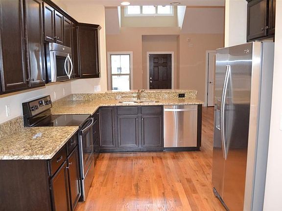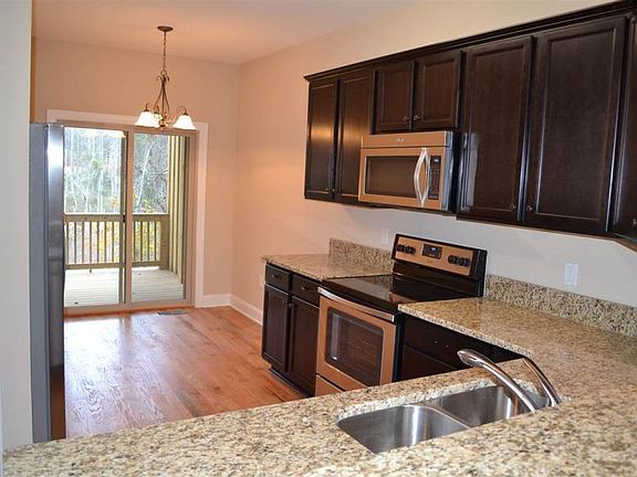This beautiful town-home features hardwood floors throughout main living area, granite counter tops in kitchen with dark cabinets, stainless steel appliances and a deck off the eat-in dining space. The master is located on the first floor with it's own exit to the deck, large closet, and full bathroom. The other two bedrooms are upstairs with a full bathroom to share as well. Natural light abounds in the living room with it's high vaulted ceiling. Available 02/08/2021