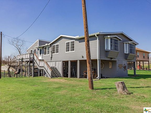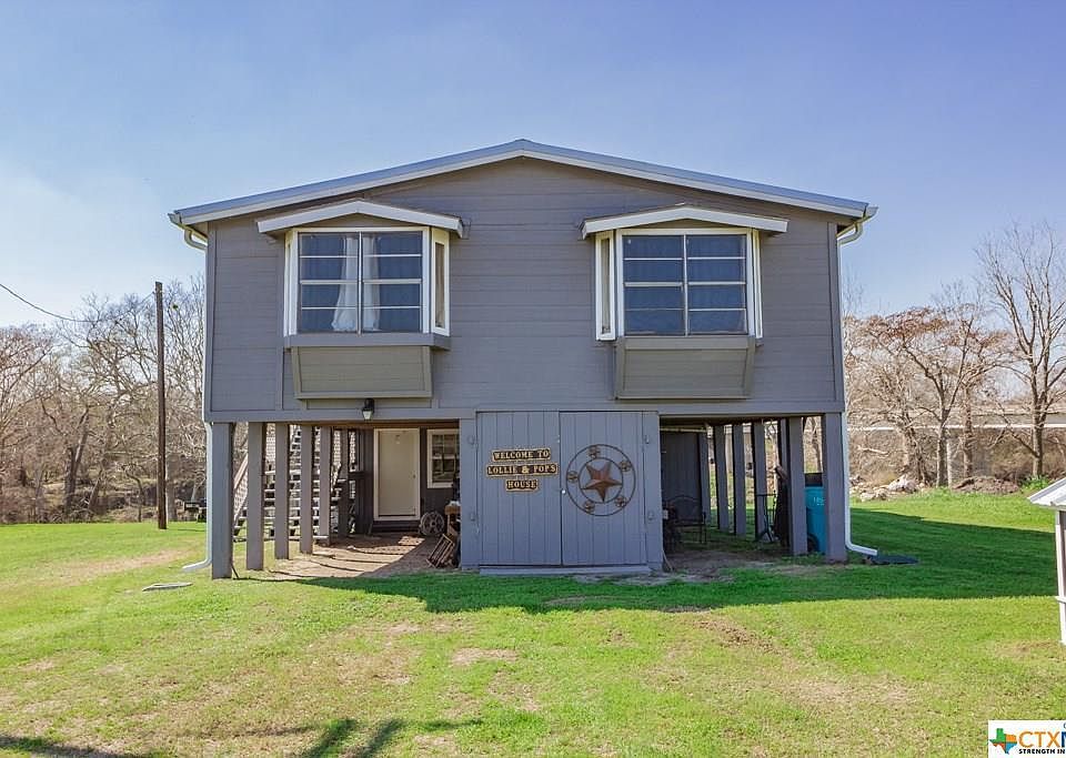 Beautiful home with a great view of the Guadalupe River! This 4 bedroom/2.5 bathroom (1/2 bath is located downstairs) is custom built and recently updated in 2019. Updates include new roof, fresh paint, wood laminate flooring, lots of storage and a fenced yard. New HVAC in 2017. All kitchen appliances except dishwasher are less than a year old and all convey. Washer and dryer also convey. Large deck under home is an entertainers dream with large TV and refrigerator that both convey. Newly built fish cleaning station that is equipped with water and electricity. Fishermen....you need to see this!