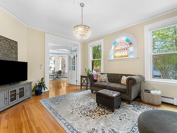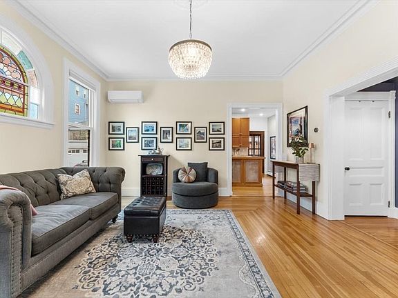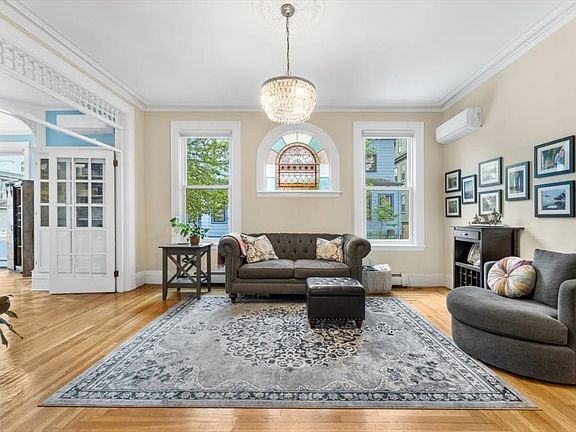 Housed in a turreted 1895 Victorian, this gorgeous condo is anything but cookie-cutter! From the gracious common foyer to the large private porch overlooking a tranquil fenced yard, this home is truly special. The unit's main floor features a flexible flowing layout with well-proportioned rooms, high ceilings, large windows and period details including original mouldings, stained glass windows and two tiled fireplaces. The lower level offers many possibilities – media room, creative workshop, space for guests -- you name it! All of this plus two parking spaces including one in the garage. Other perks include two full baths, in-unit laundry, air conditioning, and abundant storage space. Fantastic location on a tree-lined residential street with easy access to the Community Path, the Gilman Square Green Line Station, Sarma, Highland Kitchen, Neighborhood Produce, The Armory, etc. Self-managed, pet-friendly association.