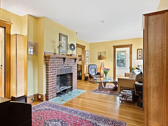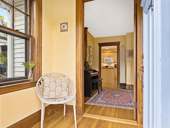 Light infused and charming, this adorable home has been beautifully renovated for modern living, without sacrificing the rich period details.The well-designed open kitchen/dining area includes plenty of cabinetry, a peninsula for extra counter space, pendant and recessed lighting, a breakfast nook, and sliding doors that open to a private bluestone patio and lushly landscaped yard. The living room with wood burning fireplace and custom tiled hearth, adjoins a window-lined office/sunroom. Upstairs are two good sized bedrooms and a gorgeous full bath with a separate tiled shower with glass wall, jacuzzi tub, white marble counter top, and built-in cabinets.Oak hardwood floors throughout. Walk-up attic is great space for extra storage. There is a convenient side entrance into the kitchen just off the driveway. Located in the tree-lined Mystic Lakes neighborhood, 40 Davis Ave is a short walk to Arlington Center, schools, the Mystic Lake footpaths and public transportation. Don't miss it!