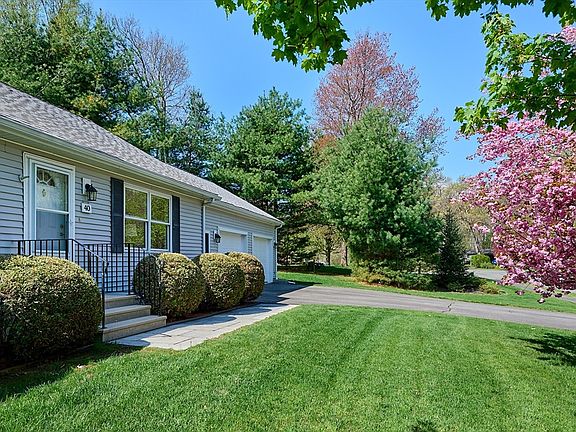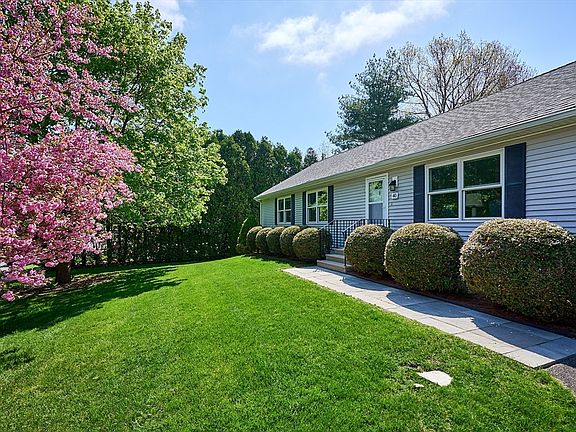 Alert! Capacious Executive Ranch is located in established neighborhood just 5 minutes to Hadley malls, 10 to Amherst Center, 15 to UMASS. In 2006 the modular (factory-built) ranch replaced an existing dwelling on a quiet cul-de-sac in Orchard Valley. The house, sited on .82 A lot w/ private backyard, was enlarged with a stick-built, oversized, 2-car garage & 4-season sunporch opening to patio.The owners placed a premium on features for comfortable living: energy efficiency (extra blown-in insulation, sealed air leaks), big bedrooms w/ walk-in closets, office w/ built-in bookcase, handicapped features (wide doorways & openings, lever door handles, step-in shower w/ built-in seat) & ample storage. Delight in south facing kitchen w/ center island, adjoined by dining area extending into peaked ceiling, windowed porch w/ ceiling fan & fir floor. Relish both the warmth & views to the inviting yard w/ specimen plantings. Versatile use, semi-finished & light-filled basement room w/ full bath.