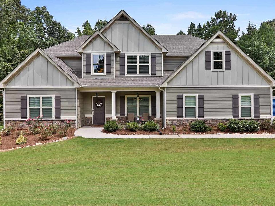 WELCOME HOME to this Craftsman beauty on 2+ acres (NO HOA) that features an Owners Suite with spa-like bath and generous closet space on the MAIN LEVEL! The 2 story foyer entry with hardwood floors leads to a Family Room with fireplace, Formal Dining Room with coffered ceilings and a GORGEOUS kitchen complete with granite countertops, white cabinets, large island and stainless steel appliances! Also on the main level is a powder room and laundry room. The SPACIOUS upper level offers a loft/recreational room or additional living area PLUS 4 bedrooms and 2 full baths and a bonus room! Note the covered front porch and 2 car garage with plentiful parking. The SCREENED rear porch with wood burning fireplace is perfect to enjoy the 2+ acre serene setting! Owners had additional concrete poured for a grilling area and additional parking, too! Don't miss this GREAT find in Moreland!!