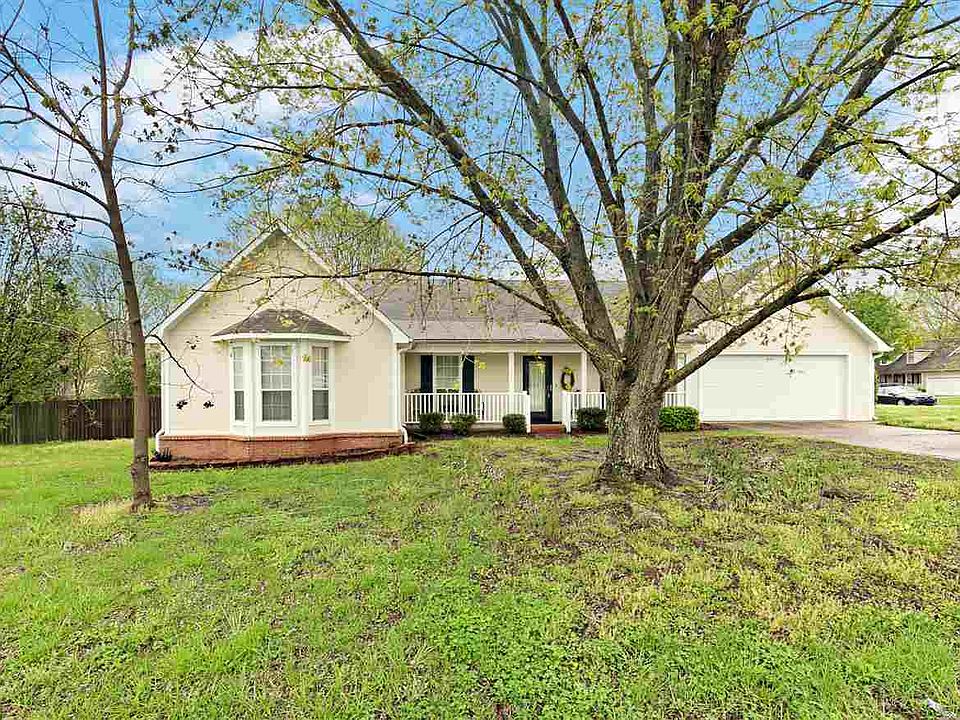 Great 3 bedroom home with welcoming covered front porch. Nice great room with vaulted ceilings and cozy gas log fireplace. Features a formal dining room and eat-in kitchen with all appliances including refrigerator. Spacious master suite with walk-in closet and double vanity. Perfect backyard for entertaining with privacy fencing and deck with built-in seating. Come check it out today! To contact the listing agent directly or to schedule a private tour, text HALTOM to 59559