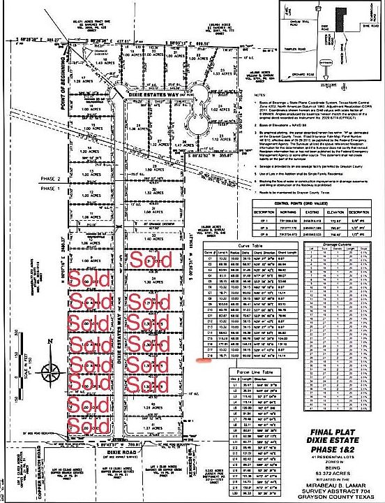 Now selling Phase 1 of Dixie Estates located near Whitesboro Texas!! Hard to find gorgeous 1 + acre lots with no HOA is ready for your dream build. 1750sf minimum, concrete roads, co-op water, and underground electric. Minutes to Whitesboro TX, 23 minutes to Sherman Texas and 1 hour to Plano! Easy commute to 75. All builders welcome. Barndos allowed.
