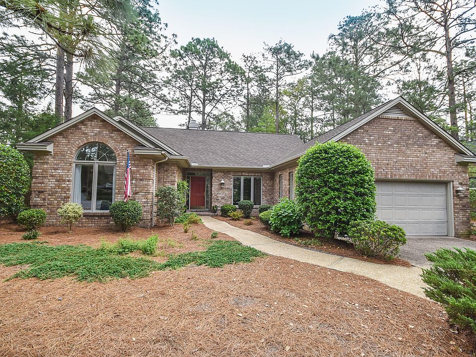 Beautiful, single level, all brick home located in desirable Doral Woods subdivision. Immaculately kept home with vaulted ceilings and custom fireplace. Open floor plan with lovely sunroom. Tons of natural light from large casement windows and sky lights. Outside there is a large deck and very private backyard. 2-car garage with separate Golf cart storage and access. Easy golf cart or walking access to Pinehurst CC. Pinehurst Country Club Charter Membership available with buyer paying transfer fee. 1 year HMS Home Warranty included.