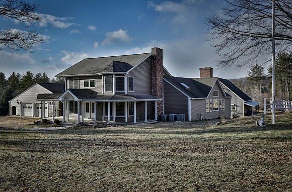 Private farm or professional facility - this offers it all for the equestrian. Expansive,inviting home on 27 acres;three horse barns for 27 horses; 60'x100' indoor arena;90'x238' outside arena; two full apartments;stunning home w/Granite/SS -many amenities;barns are turnkey. Home: radiant heat, central A/C, 3+bedrooms;bright interior;P&B;LL apartment;theatre room; trainer's apt.in main barn. Wonderful siting, low profile; private setting;barns are tucked away behind house; easy access to Conc/Manch.