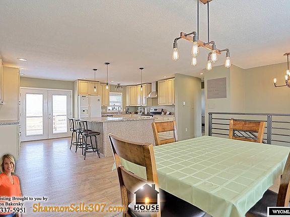 New, New NEW! Step inside to your custom steel railings, large, bright and open eat in kitchen with french doors out to one of two decks where you can take in the mountain and prairie views just past your 2.5 acres. Off the kitchen is the addition of the spacious family room with tile floors and a pellet stove as well as another set of french doors to your second deck and a pergola. With 2 bedrooms and a full bath on each level as well as a 5th room flex space on the lower level, there is plenty of space