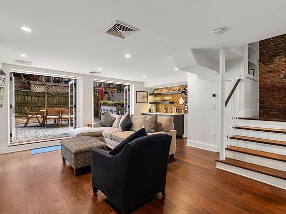 Nestled in the sought after Eight Street neighborhood, this three bedroom, two and one-half bath garden duplex checks all the boxes! A private entrance leads to this renovated, 1703 square foot unit with a perfect blend of original details and modern conveniences. The lower level offers an expansive, open concept layout featuring a kitchen with on trend cabinets, oversized quartzite island, premium appliances, separate dining area and powder room. The centerpiece of the unit is the livingroom with gas fireplace, exposed brick walls, custom built-ins, wet bar and French doors leading to a private patio. Central air conditioning, wood floors, in unit laundry and storage space in a professionally managed building. This perfect urban oasis is minutes to restaurants, coffee shops, cafes and shopping!