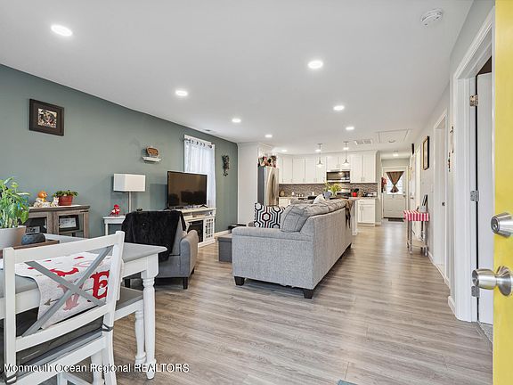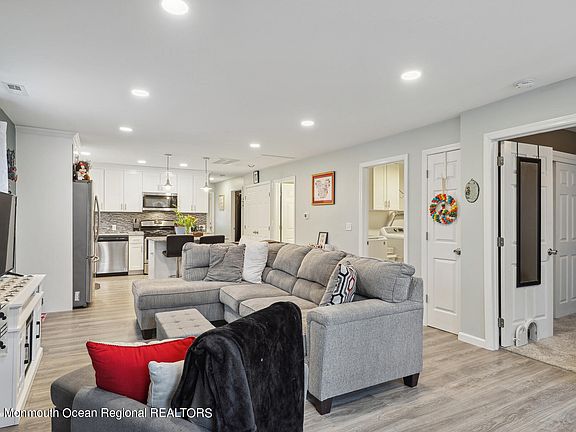 Beautifully Renovated 3 Bedroom Ranch Home With Open Concept Living Room/Dining Room/Kitchen. Renovations in 2020 include: Roof, Vinyl Cedar Shake Siding, Widows, Heat/Ac Unit, Water Heater. Custom White Kitchen Cabinets with Granite Counter Tops and Center Island, Stainless Kitchen Appliances, Recessed Lighting, Updated Bathroom, Newer Flooring Through Out, Raised Panel Doors, Oversized Laundry Room. Plus, New Garage Door Opener. Outside: Paver Block Driveway, Walkway and Rear Patio. Fenced Rear Yard With New Shed Too. A Must See House! Commuter friendly, Close To Major Roads/Park & Ride For NYC. All On A Quiet Street!