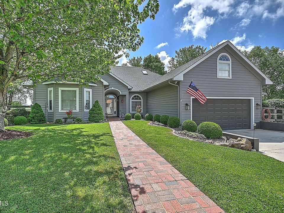 Everything you need on one level with this 4 bedroom, 3 bath home in popular Russell Acres. You will love the open, spacious feel with the vaulted and trey ceilings. And an oasis of a yard with backyard privacy and two screened porches to enjoy that stunning Tusculum Mountain view! The living room has 16' vaulted ceilings with natural gas fireplace. The kitchen has stainless appliances and eating area which opens onto one of the screened porches. The primary suite is large with a well-appointed bath which features a jetted tub and an extra-large shower. It also has a spacious walk-in closet. The upper level has a bedroom, bath, floored attic space and eave storage. An abundance of the other features include a two-car main floor garage, central vac, hookup for a gas grill, natural gas water heater and two heat pumps (one gas, one electric) In addition, there's a main floor laundry room with lots of storage cabinetry. The roof was replaced in 2021. A well-maintained home in a truly beautiful setting.