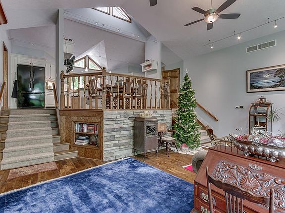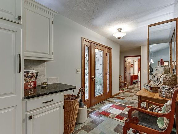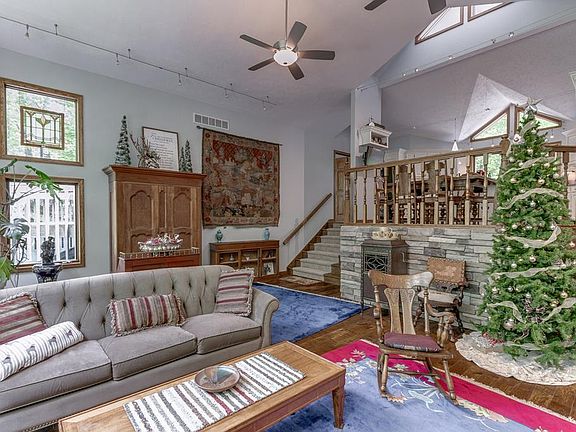 Beautiful private setting on 23 acres. Beautifully landscaped with 2 ornamental ponds with stream & water fall. This contemporary home has been completely redone in that past few years. The home has 3 full baths and a half bath in the barn at the bottom of the driveway. The kitchen is gorgeous. The kitchen area and dining area overlook the living room with views of the landscaping and trees. In addition to the gas forced air heat there is a wood burning furnace that can heat the whole house, using the wood from the property. NEW 1500 ft driveway.