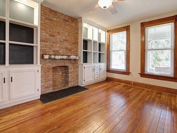 Truly fabulous townhome style brick condo with big front porch in a great location in Merion Village. Very fresh interior with original pine floors, all newer Thermopane windows, new interior paint, kitchen with white cabinetry, SS appliances open to dining/living rooms with a wall of built in bookcases and exposed brick chimneys. All newer baths. Privacy fenced bricked courtyard. See A2A remarks.