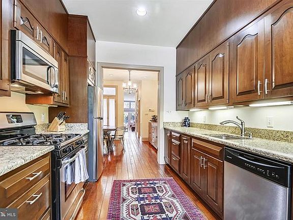 This gorgeous home, set in the heart of Federal Hill's Historic District, combines historic character with modern elegance. Inside, the open and sun-filled floor plan is enhanced by wide-plank wood floors and thoughtful design details throughout. The main level offers an inviting eat-in kitchen with stainless steel appliances and granite countertops, a separate dining room, and a dramatic sunken living room with a wood-burning fireplace. Floor-to-ceiling windows overlook a beautifully landscaped garden and patio, creating a seamless flow between indoor and outdoor living. Upstairs, the spacious primary suite features abundant natural light, while the large second bedroom includes its own wood-burning fireplace and a new queen size Murphy bed. A renovated bathroom and convenient laundry area complete this level. The third floor hosts a spacious third bedroom, full bathroom, and a flexible office/sitting area, along with direct access to a stunning rooftop deck. From here, enjoy sweeping city skyline views perfect for entertaining, summer evenings, or watching fireworks. Recent updates include new flooring in the office and family room, a Murphy bed in the second bedroom, along with fresh paint throughout most of the home and trim. Situated in a prime location, this home places you just steps away from Federal Hill's vibrant restaurant scene, charming cafes, boutique shops, parks, and lively nightlife. The Inner Harbor, sports stadiums, the Maryland Science Center and waterfront attractions are within easy reach, making this home an ideal blend of comfort, convenience, and city living. Paid parking is available in the lot just behind the property. 12 months minimum and maximum
