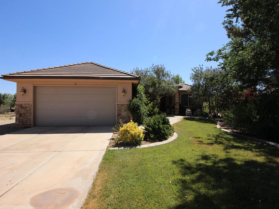 Tuscan style well kept home with many quality upgrades. Stamped concrete floors, granite countertop, Refrigerator included. Great split floor plan, laminate floor in den, lots of tile in baths. Beautiful landscaping. Lots of parking. You even have room to build a shop! Come live the quiet life in luxury in this quiet subdivision with great views.