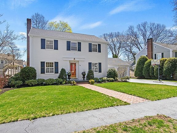 A rare offering of this well-appointed center entrance colonial seamlessly blending elegance & charm, is located on one of the most sought after ladder streets. Upon entering, you're greeted by a generous fireplaced living rm., which flows into a formal dining room. The light infused eat-in kitchen has stainless appliances, granite counters & breakfast area. The fireplaced family room has custom built-ins and overlooks a beautiful semi-private fenced yard, perfect for entertaining & outdoor fun. The primary bedroom addition has a large walk-in & additional closet. There are three other spacious bedrooms with generous closets and a walk-up attic. Many recent enhancements inc.: freshly painted interior & exterior, fence, professional landscaping, kitchen, appliances, refinished hardwood floors, roof, powder room, Viessmann heating system, insulation. This exquisite property is sited on a large, level lot w/ 2 car garage, convenient to Needham Ctr., Pollard, playing fields, shops & Train.