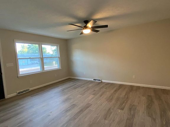 This 3 bedroom home has been completely renovated within the last 6 weeks. New roof, siding, garage door and exterior doors. Inside the home has new flooring, lighting, paint, doors and updated bathroom. Kitchen cabinets have been painted with new backsplash, farm sink and butcher block countertops. It is complete with new appliances and large glass sliding door leading to the new patio. You will enjoy the view in this large backyard. There are no neighbors behind this home. *furnace, hot water heater and a/c are new within the last 5 years.