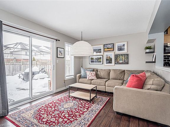 Beautiful one owner luxury FREEHOLD townhome located in a sought after East End family neighbourhood, close to historic downtown Guelph and University. This modern, professionally decorated 3 bedroom, offers open concept Kitchen/Dining and Living Room with sliders leading to the fully fenced backyard and deck which has extensive perennials, bushes & a miniature maple tree. The basement is a finished recreational room/office space with a partially finished three piece bathroom. Front yard has a new stone walkway complete with stone front porch. Walking distance to schools/trails/parks and local amenities, 5 mins to highway 7 and 20 mins to 401.