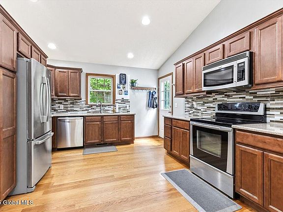 Nestled on a low-maintenance lot in a quiet area of Queensbury, this beautifully maintained 3-bed, 2-bath home offers comfort, space & convenience! The updated kitchen features Corian countertops, abundant cabinetry & breakfast bar—perfect for everyday living & entertaining. A flexible dining area can also serve as a cozy den! Upstairs you'll find 2 spacious bedrooms & a full bath, while the lower level offers a primary suite w walk-in closet & a beautiful bathroom, a large living room & laundry/utility room! Enjoy outdoor living w fenced backyard, patio, enjoy relaxing evenings around the firepit! A generous side yard provides additional space to roam! Shed & 2 car garage! Minutes to schools, shopping, Lake George & all the fun the Adirondacks has to offer! Don't miss out on this one!!