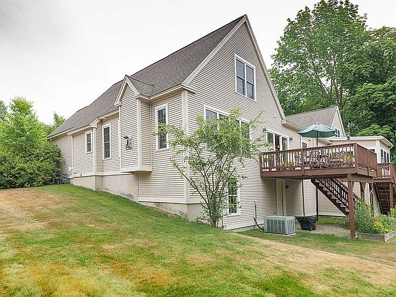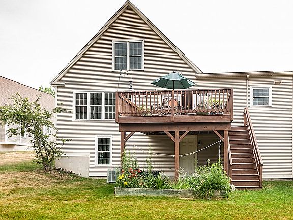 FITTS FARM! 55+ COMMUNITY. You will love this very private unit on a larger lot that backs to the woods and (former)pond. First floor Master bedroom with walk-in closet and Master bath with a walk-in shower. There is an office with French doors and at the end of the hall a huge open floor plan kitchen/dining room/living room with a slider out to the deck. The gas fireplace will warm you in winter! Full unfinished basement has walk-out door and large window. 2 more bedrooms upstairs, a full bath with tub-shower and an unfinished attic.1 car garage. Original owner! These units are scarce, so call today!