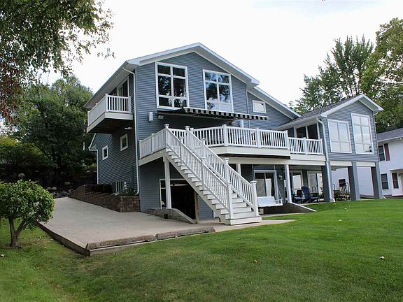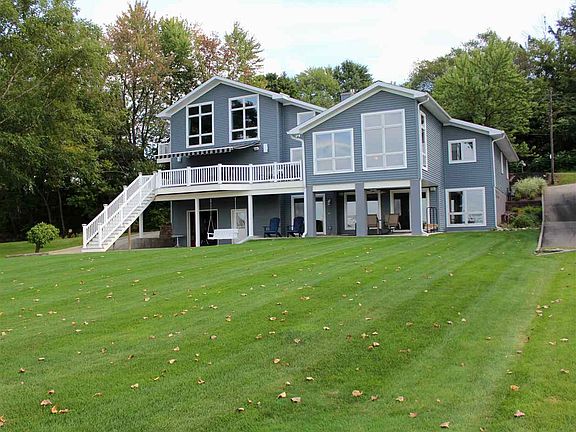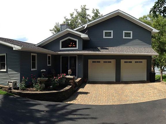 FABULOUS LAKE HOME & SETTING, THOUGHTFUL DESIGN CAPTURING ALL THE ELEMENTS OF LAKE LIVING, EXPANSIVE VIEWS, GREAT SWIMMING, 76' LAKEFRONT W/SUN ALL DAY & BEAUTIFUL EVENING SUNSETS, SPACIOUS & LEVEL LAKEFRONT YARD, WONDERFUL PROPERTY FOR ENTERTAINING, OPEN CONCEPT- VAULTED LIVING, KITCHEN, DINING AREAS, WALL OF WINDOWS, CUSTOM CABINETRY & GRANITE COUNTER TOP, STAINLESS APPLIANCES, SITTING ROOM W/GAS FIREPLACE, WONDERFUL OPEN DECK OFF LIVING ROOM W/MOTORIZED RETRACTABLE AWNING, 3 MAIN LEVEL BEDROOMS W/FULL BATH, UPPER LEVEL MASTER SUITE W/ONE OF KIND VIEWS & PRIVATE BALCONY, LOWER LEVEL ENSUITE BEDROOM W/MINI KITCHEN, SPACIOUS FAMILY ROOM W/WOODBURNING FIREPLACE, PANORAMIC VIEWS OF THE LAKE, LARGE COVERED PATIO, SPACIOUS LAKESIDE GARAGE/WORKSHOP (24 X 24) GREAT FOR LAWN EQUIPMENT & LAKE TOYS, FULL CONCRETE PARKING ON SIDE THAT ALLOWS ACCESS TO LAKESIDE YARD & GARAGE, GREAT FOR RV OR ADDITIONAL PARKING SPACE, NICELY LANDSCAPED, WONDERFUL PAVER DRIVEWAY & BLOCK ENTRYWAY, (24 X 24) ATTACHED GARAGE, INGROUND SPRINKLER SYSTEM, MAINTENANCE-FREE VINYL DOCKING, DUAL HEATING/COOLING SYSTEMS, RECESSED LIGHTING THROUGHOUT, MULTI-ROOM AUDIO, GREAT YEAR AROUND OR SEASONAL HOME.