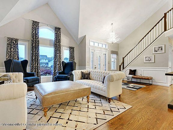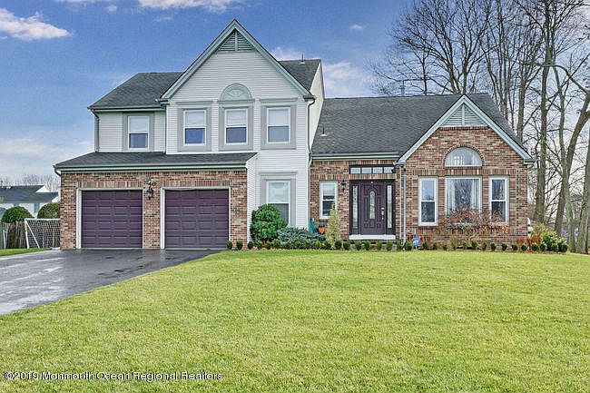Manalapan's Southfield Estate offers this updated 4 bedroom 2.5 bath home on a private cul de sac. Guests are greeted with formal living room with vaulted ceilings and decorative molding. Formal dining room over looks expanded kitchen that has been renovated with stainless steel appliances, large center island, quartz countertops, stainless steel ventilation, and marble backsplash. Oversized family room has recessed lighting, French doors to bonus room, and fire place. Large master bedroom has walk in closet and master bath with double sinks, stall shower, and soaking tub. Finished basement with additional family room plus spare finished room. Exterior features .69 acre corner lot with inground pool and large deck, perfect for summer entertaining. Close to NYC transportation.