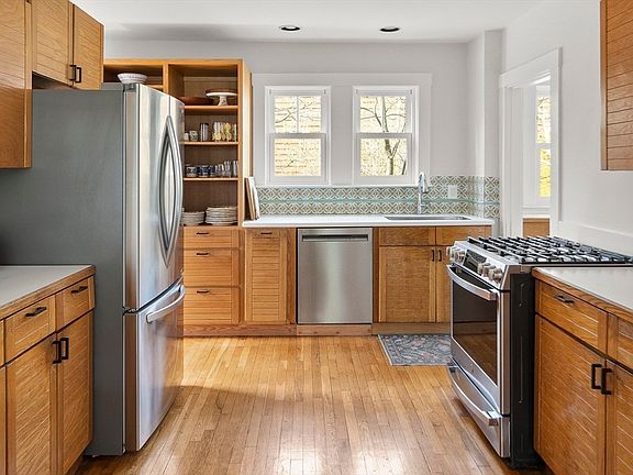 Ideally situated in the desirable Baldwin neighborhood, this delightful single-family home blends 1930s charm with modern amenities. Formal living and dining rooms complement the less formal sitting room and a large eat-in-kitchen, which offers plenty of counter and storage space, SS appliances, custom tiles, and a stackable W/D. The second floor landing functions as a cozy library, with built-in bookshelves and cabinets. There are three bedrooms on this level, including two en-suite; the primary bedroom features a lovely renovated bathroom, walk-in dressing area, and Juliet balcony. On the top floor, two bedrooms, a bathroom, a family room, and a kitchenette make this space perfect for guests, working from home, or au pair. The basement combines storage space with a semi-finished, heated workshop with direct access to the yard. Outside, a bluestone patio, perennials, and flowering trees and shrubs create a restorative atmosphere. Off-street parking for one car, with EV charger.