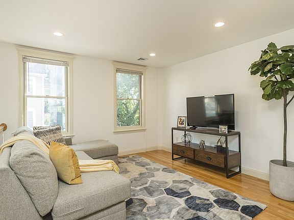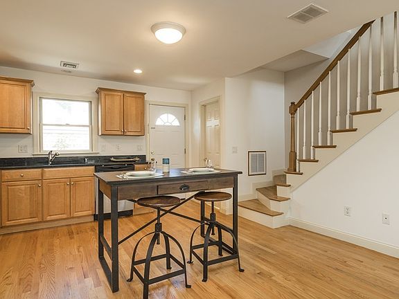 Available Now! Charming 3 Bed / 2.5 Bath townhouse-style condo with a private patio in historic Eagle Hill. The first level features two bedrooms, a full bathroom, and in-unit laundry. Upstairs, the second level is a spacious open-concept living and dining area with hardwood floors, a modern kitchen with granite countertops and stainless steel appliances, and a half bath. On the top floor, you'll find the primary suite, featuring a full bath with a jetted tub and a walk-in closet. Additional highlights include central A/C and heat, exposed brick accents, ample storage, sleek modern finishes throughout, and water included in rent. Enjoy the perfect blend of historic charm and contemporary comfort just steps from local restaurants, parks, and public transportation. With its thoughtful layout and prime East Boston location, this home is truly a rare find.
