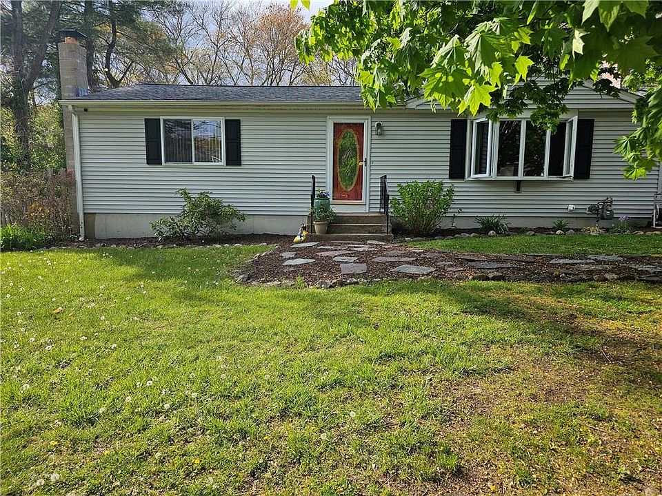 Set on a private lot in North Kingstown, this ranch home offers a tranquil retreat surrounded by nature. Hardwood floors flow throughout the main living areas, complementing the cozy fireplace in the spacious family room. The kitchen features modern amenities and overlooks a sunny dining area, ideal for enjoying meals with loved ones. With three bedrooms and two and a half bathrooms, there's ample space for comfortable living. The full basement provides additional entertainment space, complete with its own kitchen for hosting summer soirées. Plus, the one-car garage offers convenience and storage options for outdoor gear.