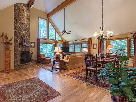 Beautiful cottage located on the 10th Fairway, walking distance to the clubhouse. Open floor plan on the main with a monumental stone wood-burning fireplace in the living room which is open to the dining area and kitchen - great for entertaining friends and family. The kitchen has a stainless steel gas range, refrigerator and dishwasher and a large island with built-in wine rack. Off the kitchen is a cozy sun room that offers additional summer living space with skylights and a view of the golf course. There are two bedrooms, 2 full baths, and a spacious loft. The master en suite with luxurious full bath boasting marble sinks, deep soaking tub, spacious tile walk-in shower with steam shower, and heated floors is tucked away off the kitchen on the main level. Guest room and a full bath with walk-in tile shower are located on the opposite side of the home, providing ample privacy for all. Open loft area would make a great den, additional guest quarters, media room, etc. Home also has a full house water filtration system. High speed fiber optic cable internet is included in your amenities! The Club amenities are fabulous, you do not have to join to live here, but you will want to once you see the facilities! Recently renovated clubhouse with attention paid to every detail for members fullest enjoyment.