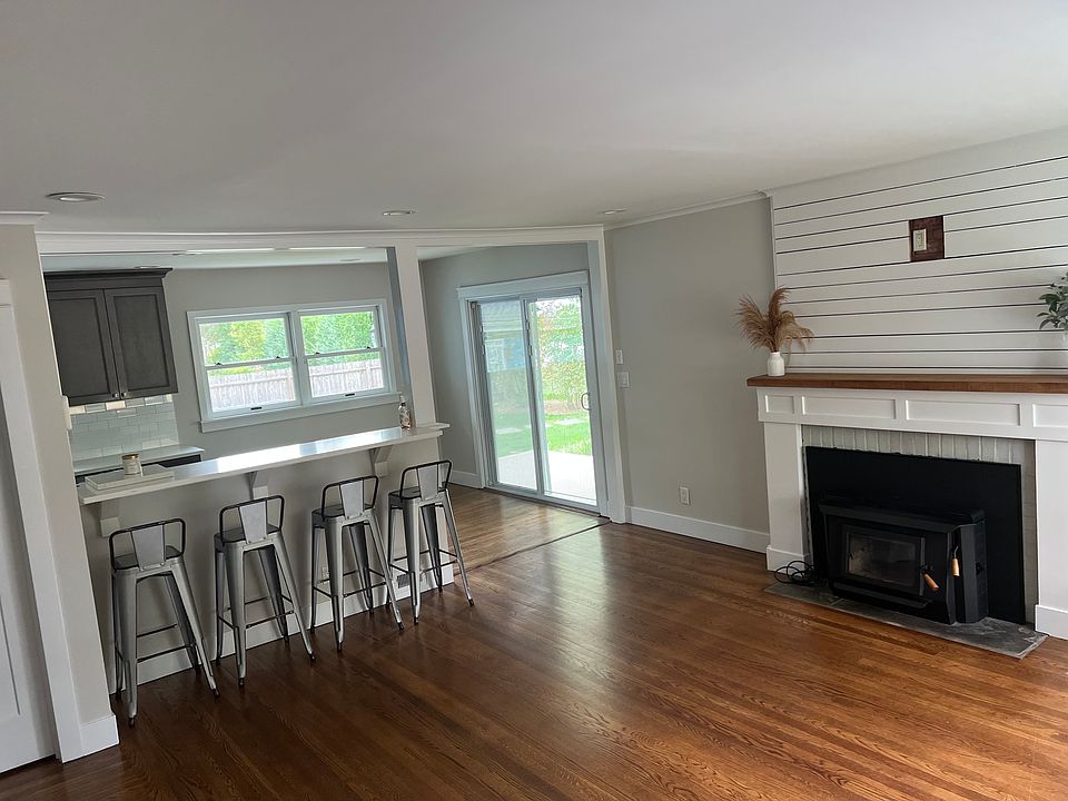 Renovated two bedroom ranch with custom kitchen and bathroom. Stainless steel appliances. Custom walk-in closets. Hardwood floors throughout. High end wood burning stove fireplace insert. Central heat and A/C. Washer and dryer in basement. Plenty of storage in basement. Well maintained landscaping. Quite and convenient area. Keyless entry. Fiber Internet. Owner pays for water, gas, electric and landscaping. Tenant pays for oil, which is for heat only.