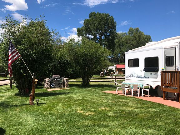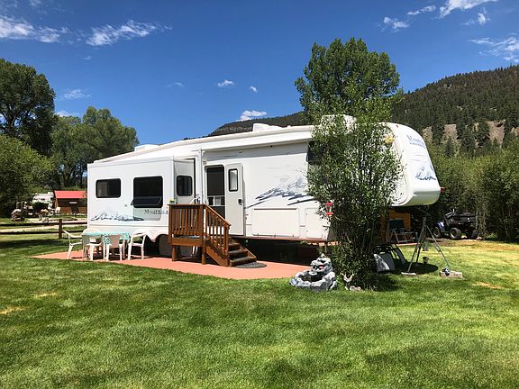 A perfect summer get away with two contiguous lots (12,000 and 10,000 sq ft) that are beautifully landscaped, surrounded by trees, incredible views of the mountains and within walking distance to the Conejos River. Included is a 2005 Keystone Montana 37' 5th wheel, a finished 250 sq ft cabin with a 3/4 bath that sleeps 4 and a storage shed. Also included on this property is a private metered irrigation well, two RV full hookups, and a fire pit.