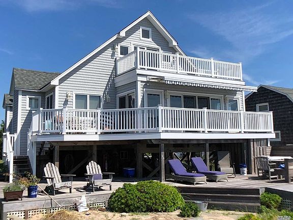 Stunning Oak Beach Waterfront. Boaters dream overlooking the Fire Island Inlet 125' Pier w/12,000 lb. boat lift, New Bulkhead and your own private beach! 7,500 sq.ft. lot. Recently Raised(13' Elevation) and updated. Open layout with many high end finishes. Onyx bathroom w/steam shower, Radiant heat, Wood burning stove, Hardwood floors, Ipe decking, Cedar outdoor shower, Casola water system, New well. Detached garage/large driveway. Great investment property with summer/winter rental potential.