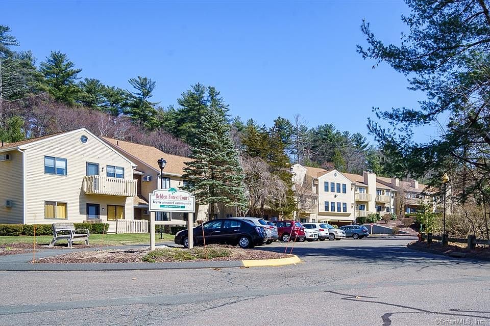 Lovely Condo with an open floor plan that is located on the 3rd floor via elevator or stairs. Living room/dining room has wood floors with decorative fireplace and a slider that opens to a deck. The kitchen is bright and fully applianced. The Bedroom is separated by a tall pony wall (see pictures for reference) that offers just that little bit of extra privacy. The Unit comes with one assigned parking spot and storage unit. Belden Forest Court is a Retirement/Independent living 55+ community and the HOA includes weekly housekeeping and linen change. Steps from the center of Simsbury, close to bike and walking trails, great restaurants and shops.